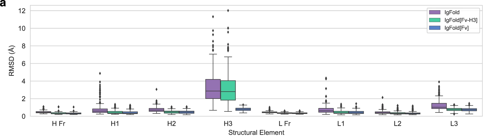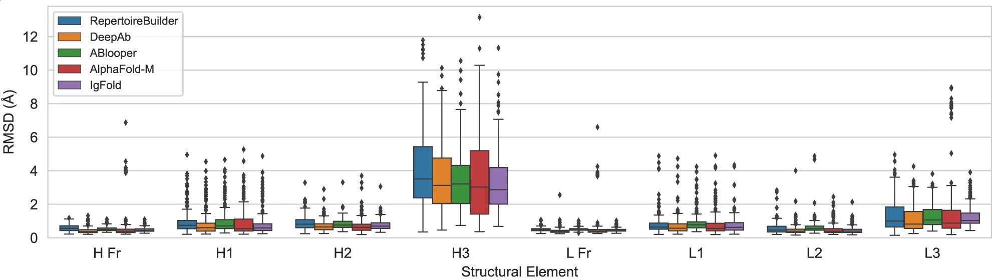 | Method | CDR H1 (Å) | CDR H2 (Å) | CDR H3 (Å) | Framework (Å) |