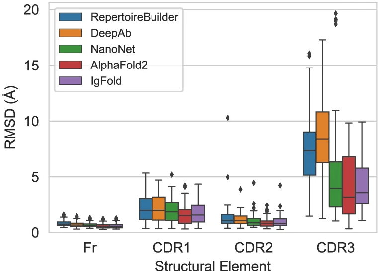 | Method | CDR1 (Å) | CDR2 (Å) | CDR3 (Å) | Framework (Å) |